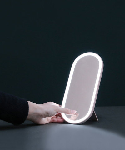 Nieuwe Collectie Eivorm Grote Opslagruimte Voor Make Up Gereedschap Met Led Smart Sensor Schakelaar Spiegel Met Led Licht voor Schoonheid
